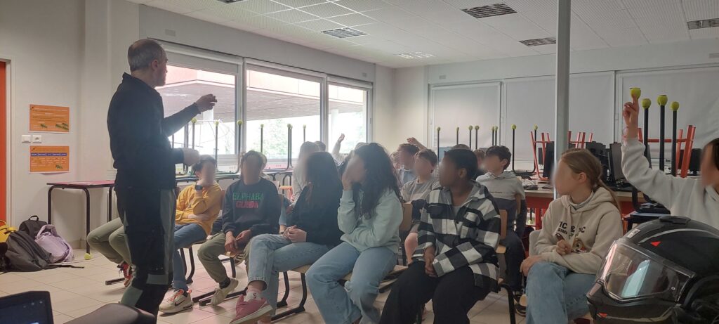 Ce vendredi 04/04, deux animateurs de la FFMC46 (Jean louis et Jean-Pierre) sont intervenus dans des classes de 5 ème du collège Jean Lurçat à St Céré. Les 94 élèves présents sur quatre sessions se sont investis dans les échanges sur la compréhension et les bonnes attitudes dans le domaine de la sécurité routière. Le simulateur a toujours autant de succès mais les comportements routiers ont une large marge de progression.