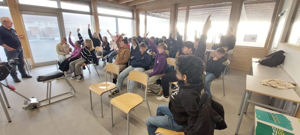 Aujourd’hui, Jean louis et Henri ont animé une session de sensibilisation à la sécurité routière dans le nouveau collège d’Orlinde de Bretenoux (inauguré en octobre 2023).