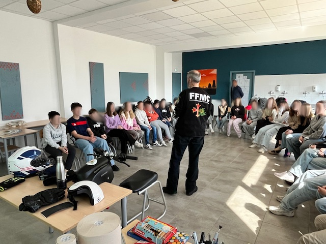 Ce lundi 23/03, les animateurs de la FFMC46 (Lucho et Jean-Louis) sont intervenus dans des classes de 5 eme du collège La Garenne à Gramat où les 53 élèves présents sur deux sessions ont pu bénéficier de conseils sur la sécurité routière et sur le partage de la route en 2RM. Le simulateur de conduite a été pris d’assaut mais dans la bonne humeur et dans un relatif respect des consignes d’utilisation.