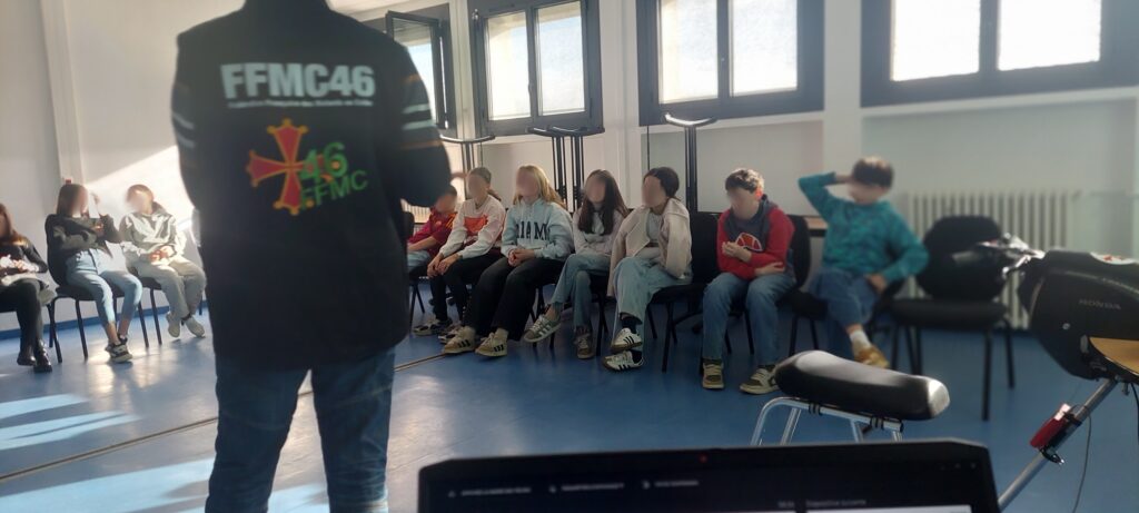 Ce jeudi 26/03, les animateurs de la FFMC46 (Jean-Louis, Lucho et Luc) sont intervenus dans trois classes de 5 -ème du collège de Puy d’Alon à Souillac. Les 64 élèves se sont montrés très démonstratifs et motivés avec les animateurs sur les notions de partage de la route et sur les précautions à prendre pour se protéger au mieux dans le domaine de la circulation en 2 roues. Nous avons pu échanger sur leurs expériences de la route dans un réel esprit de partage.