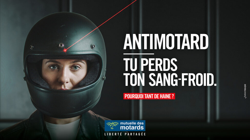 La Mutuelle des motards fait campage sur le thème : Antimotard Tu perds Ton sang froid.