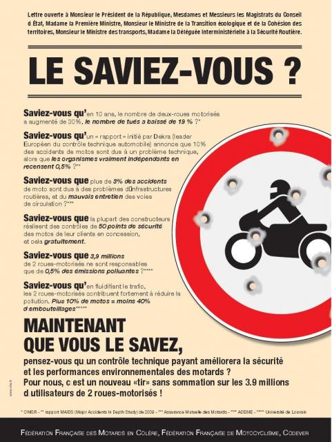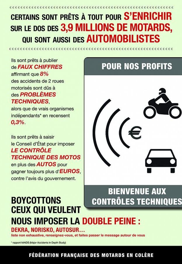 En résumé, une action percutante et bien organisée qui montre bien la détermination des motards à refuser qu’on leur impose un Contrôle Technique aussi inutile que coûteux.