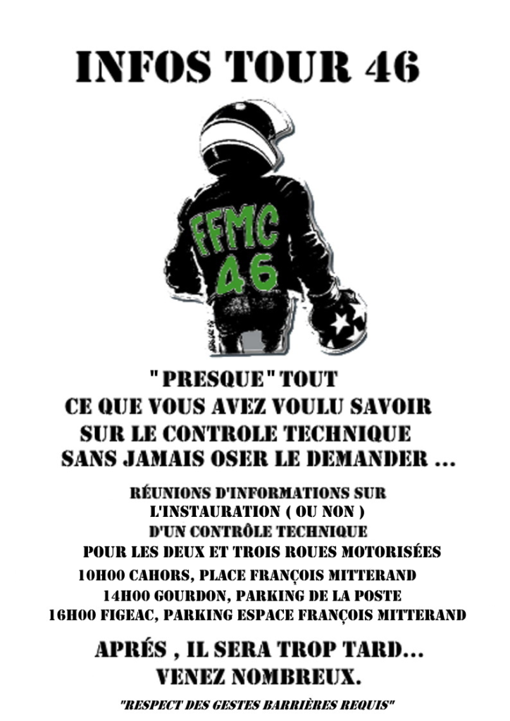 PS: Renseignements complémentaires au 05 65 33 69 57 (Jean louis, coordinateur FFMC46)