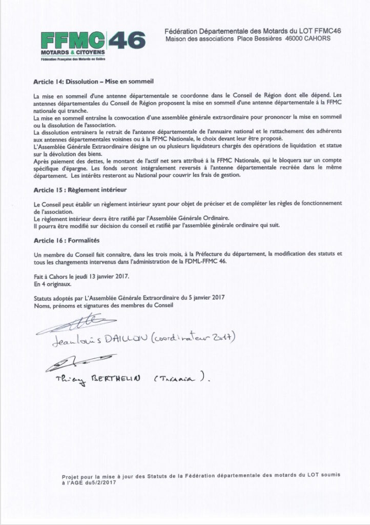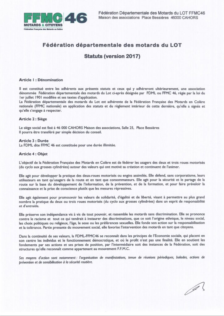 Fédération Française des Motards en Colère, antenne du Lot