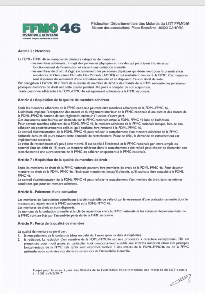 • Actualités FFMC Nationale